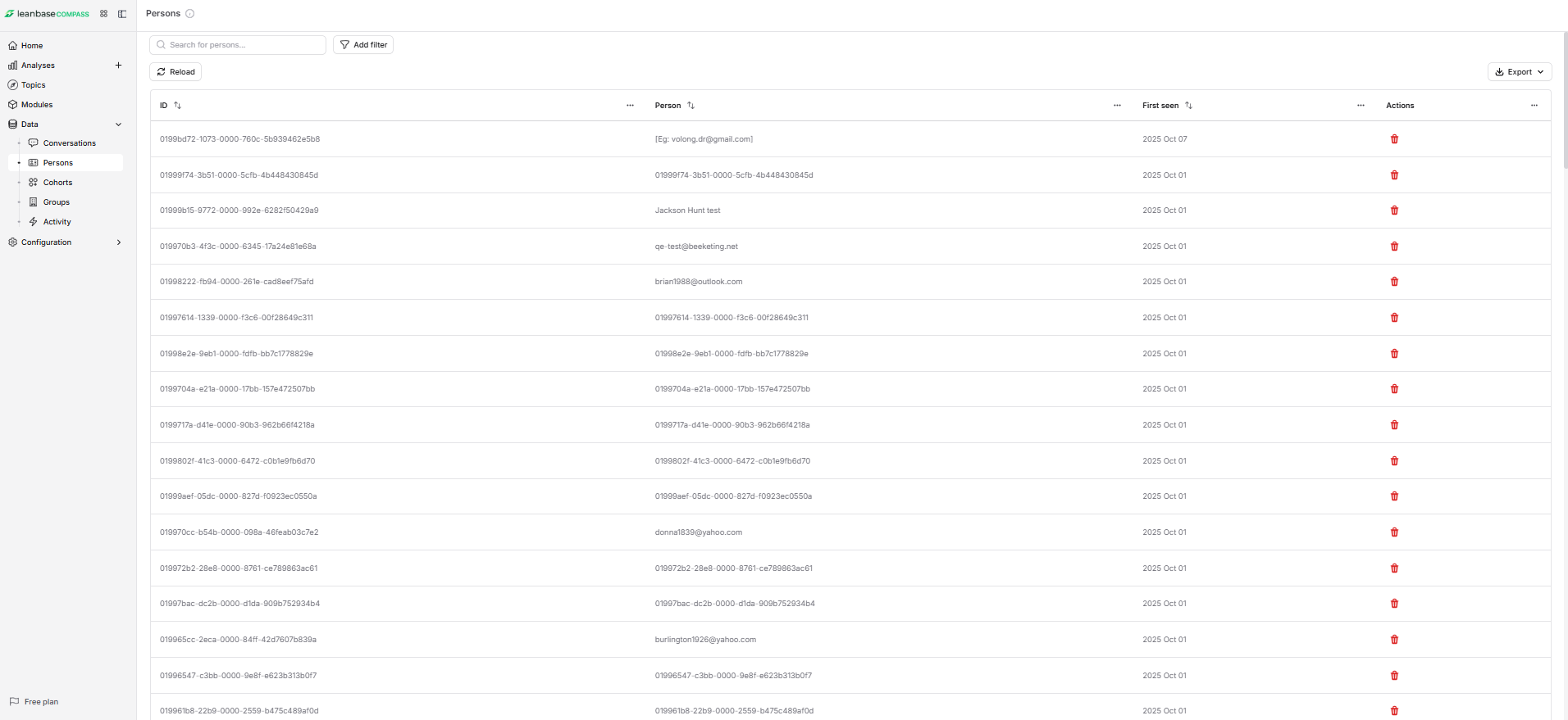 People in Leanbase represent the users behind your events. You can view them in the People tab.