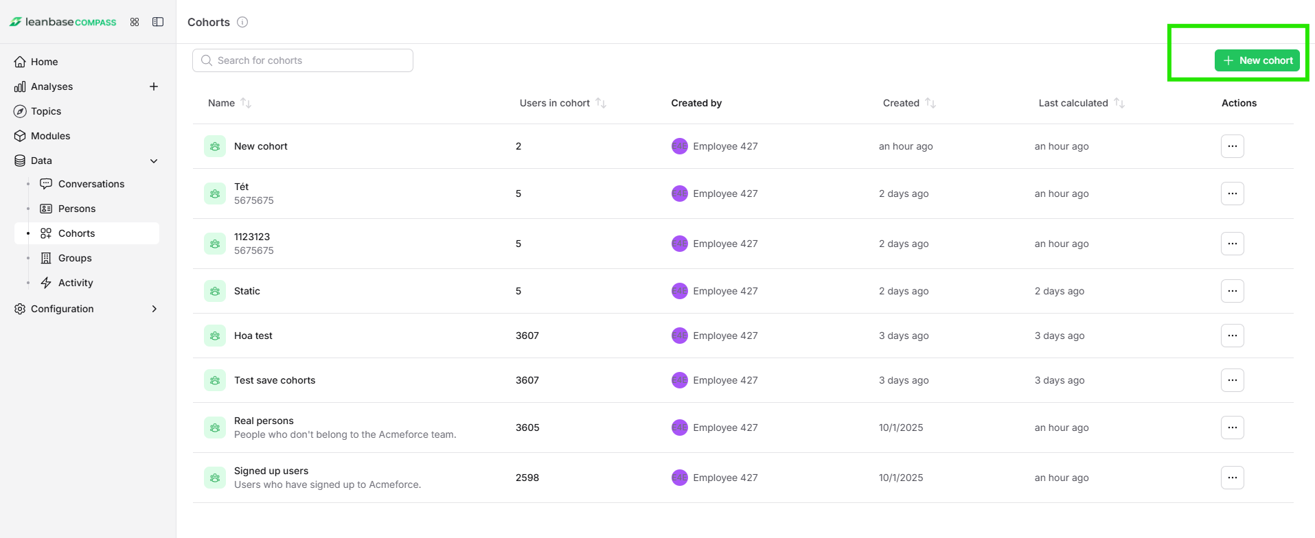 Navigate to the People page within the sidebar, then click on the Cohorts tab.