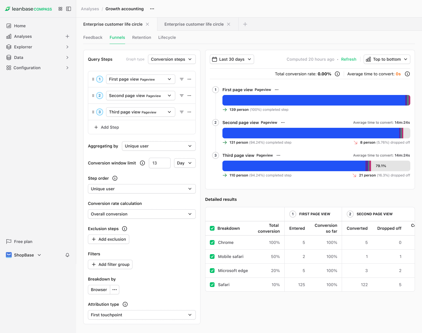 This guide walks you through the core analytical tools in Leanbase: Funnels, Retention, Lifecycle, and Feedback Analysis.