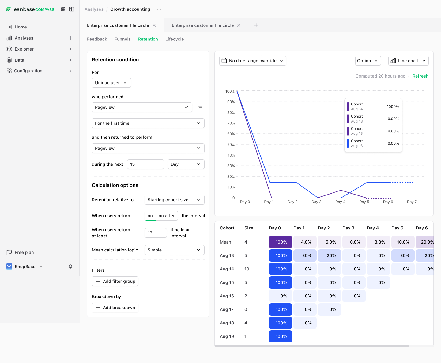 Retention in Leanbase shows how many users return to your product over time. It helps answer critical questions like: