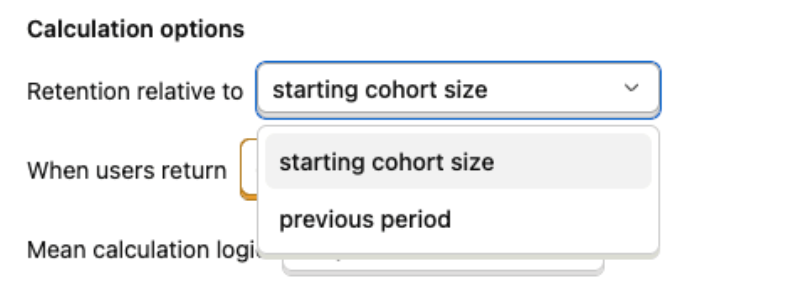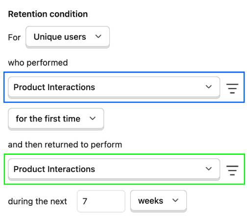 Define retention periods – Choose any interval (hours, days, weeks, or months). For example, “in the last 12 months” to assess year-long retention.